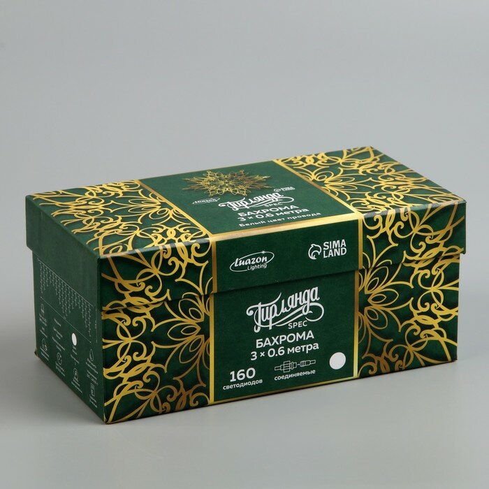 Купить Luazon Lighting Гирлянда «Бахрома» 3 × 0.6 м, IP44, УМС, белая нить, 160 LED, свечение белое, мерцание белым, 220 В