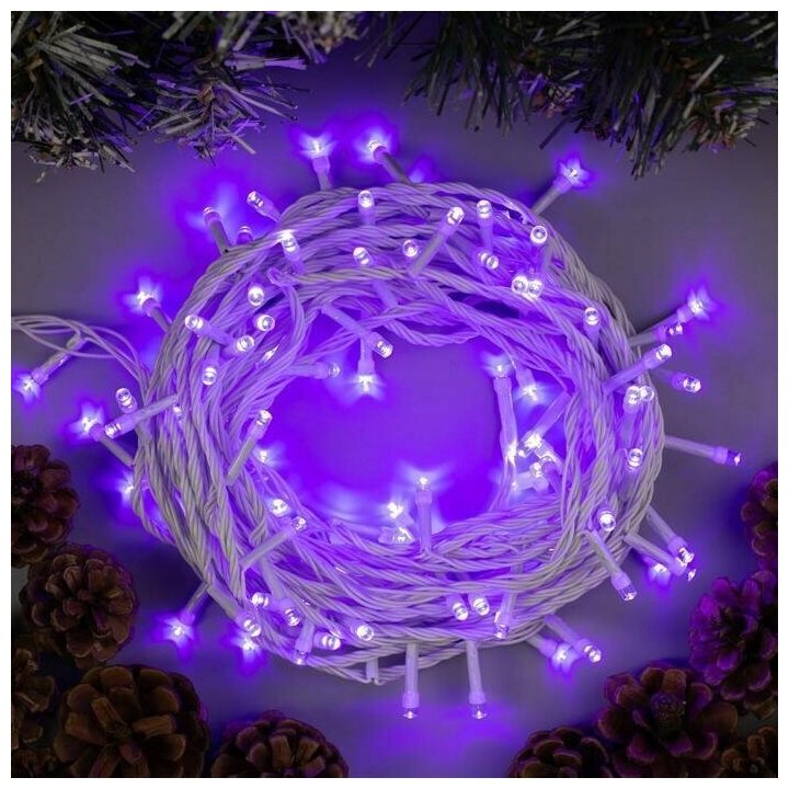 Гирлянда «Нить» 10 м, IP20, белая нить, 100 LED, свечение фиолетовое, 8 режимов, 220 В