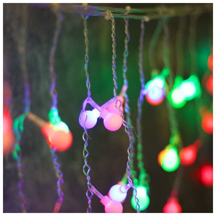 Гирлянда «Бахрома» 1.8 ? 0.5 м с насадками «Шарики», IP20, прозрачная нить, 48 LED, свечение мульти (RG/RB), мигание, 220 В