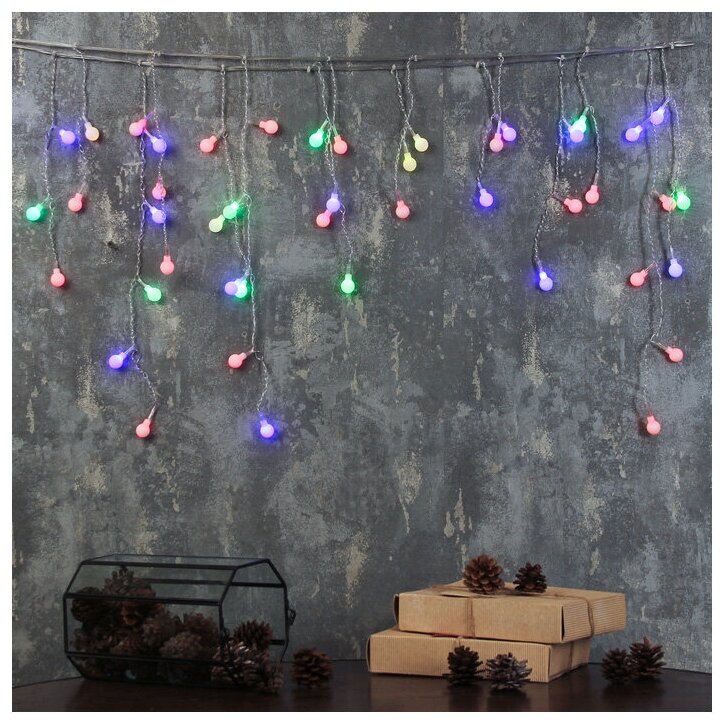 Гирлянда «Бахрома» 1.8 × 0.5 м с насадками «Шарики», IP20, прозрачная нить, 48 LED, свечение мульти (RG/RB), мигание, 220 В