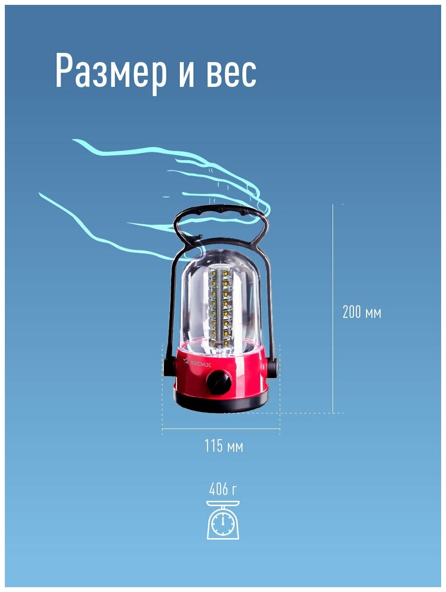 Фонарь кемпинговый Космос 6010 LED (2 акк. 4V 0.9Ah) 32LED (350lm), красн./пластик, влагозащитны электротовар