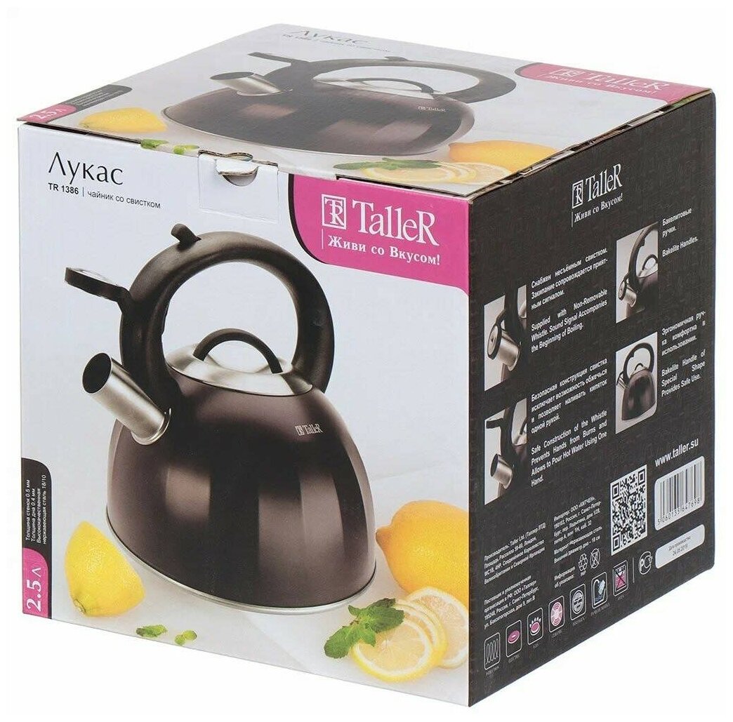 Ниже Вы можете прочитать отзывы на Taller Чайник со свистком Лукас, TR-1386, 2.5 л, коричневый, ознакомится с подробными характеристиками, посмотреть интересные обзоры и фотографии на Taller Чайник со свистком Лукас, TR-1386, 2.5 л, коричневый.
