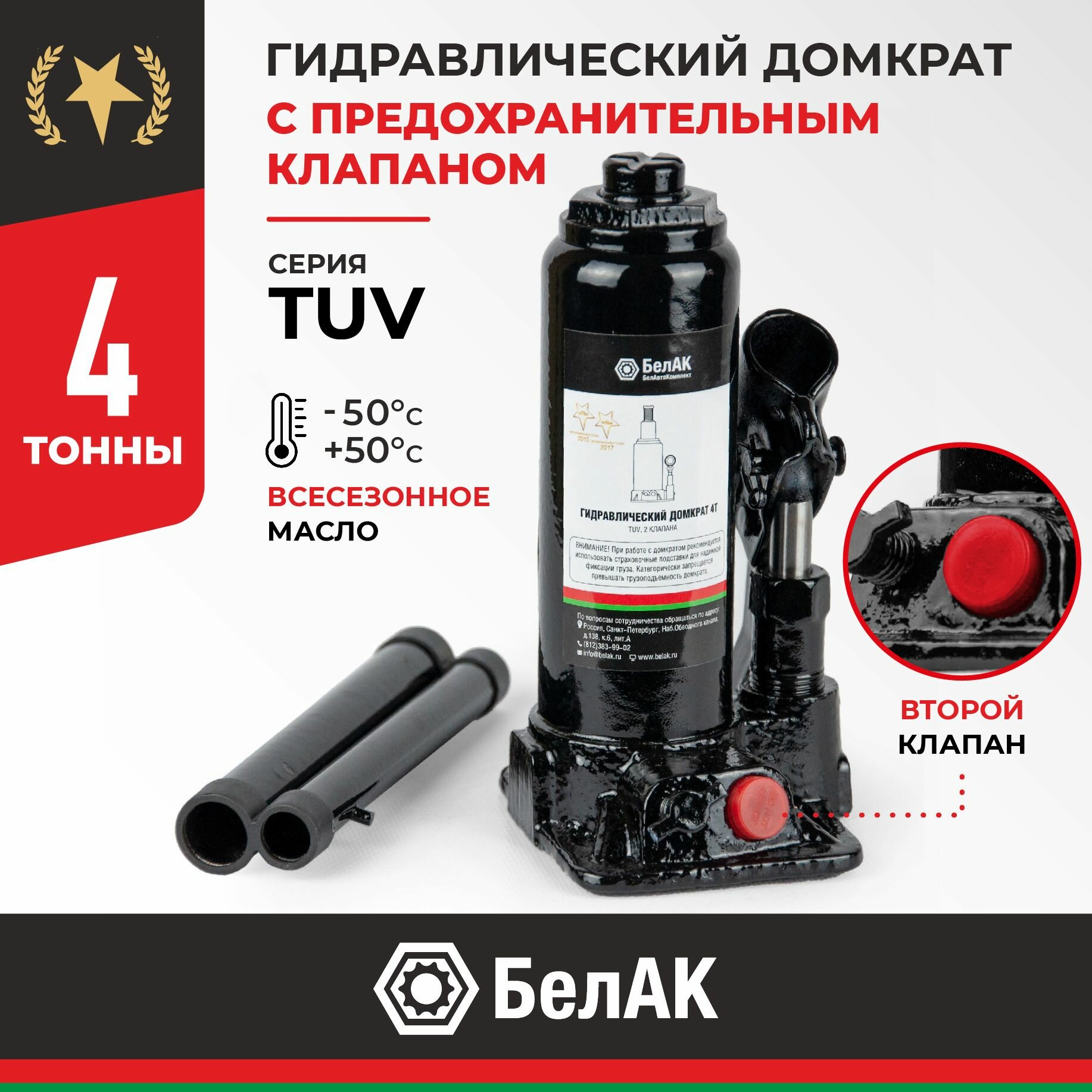 БАК00028 белавтокомплект Домкрат 4 тонны (TUV, 2 клапана) "БелАК" (170мм-335мм)