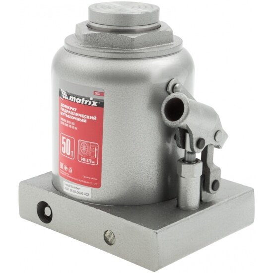 Домкрат гидравлический бутылочный, 50 т, высота подъема 240-370 мм MATRIX 50737