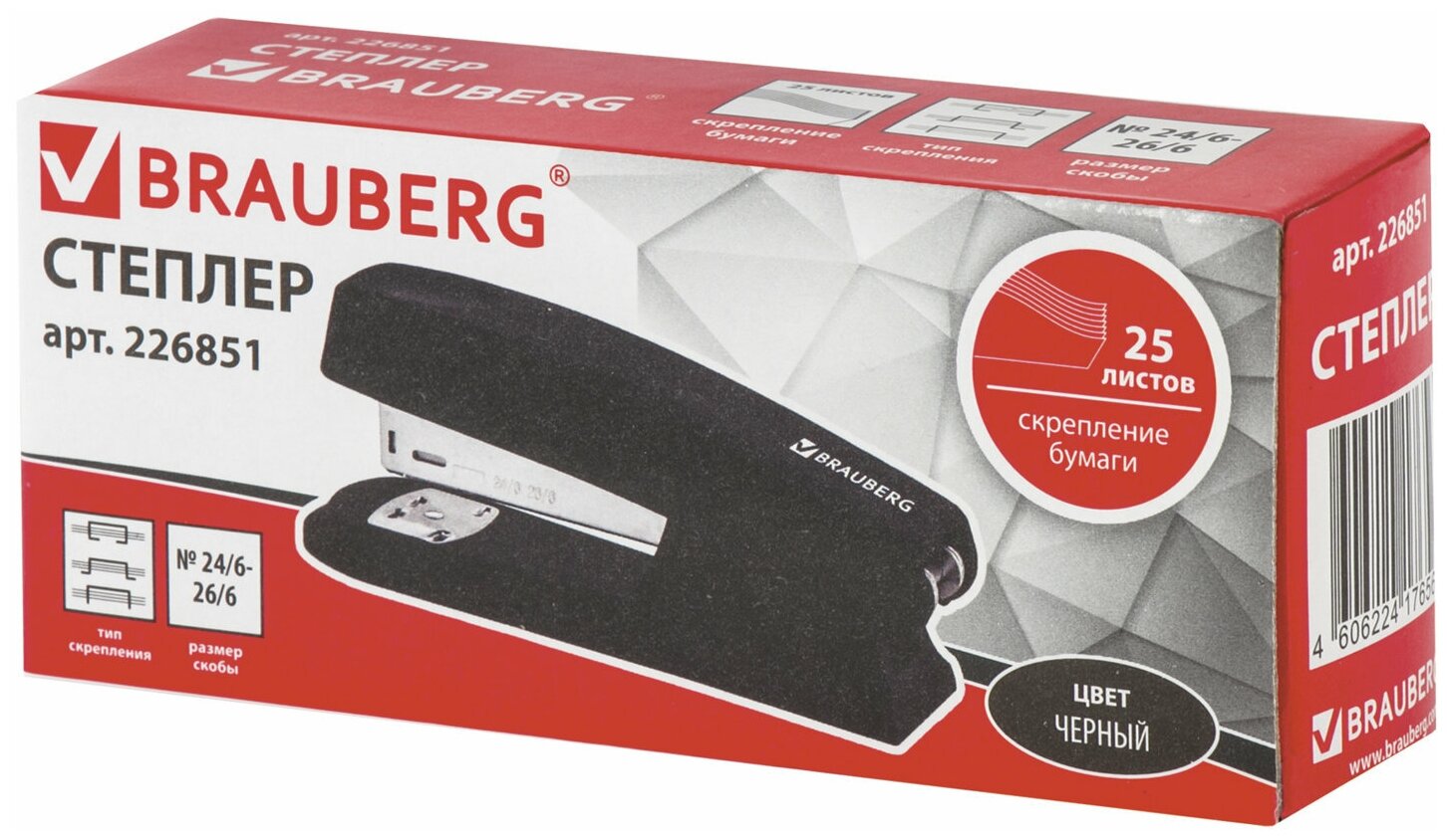 Степлер №24/6, 26/6 BRAUBERG "Standard", до 25 листов, черный