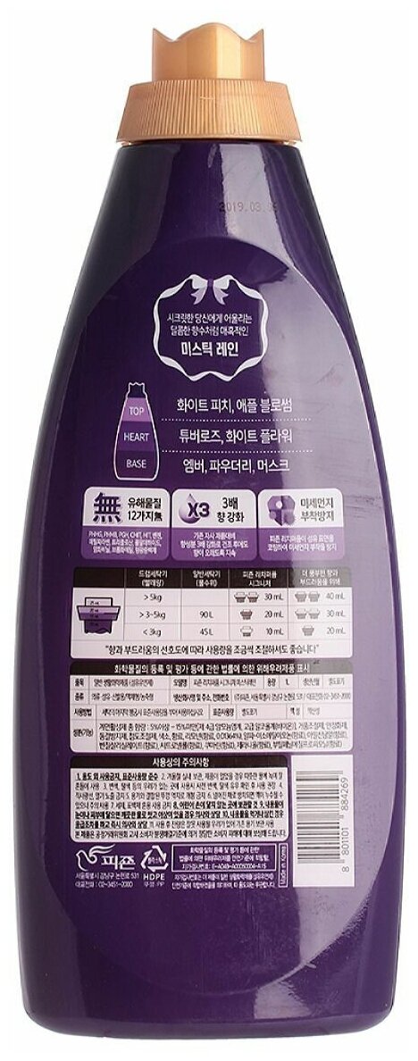 PIGEON RICH PERFUME (Mystic rain) Концентрированный кондиционер для белья с ароматом цветов яблони, персика, амбры и мускуса 1000мл