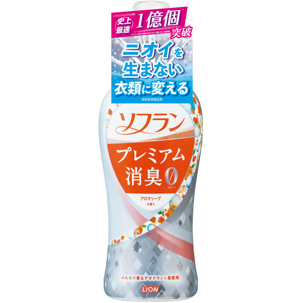 LION Кондиционер для белья "SOFLAN" (с длительной 3D-защитой от неприятного запаха "Premium Deodorizer натуральный фруктовый аромат 550мл
