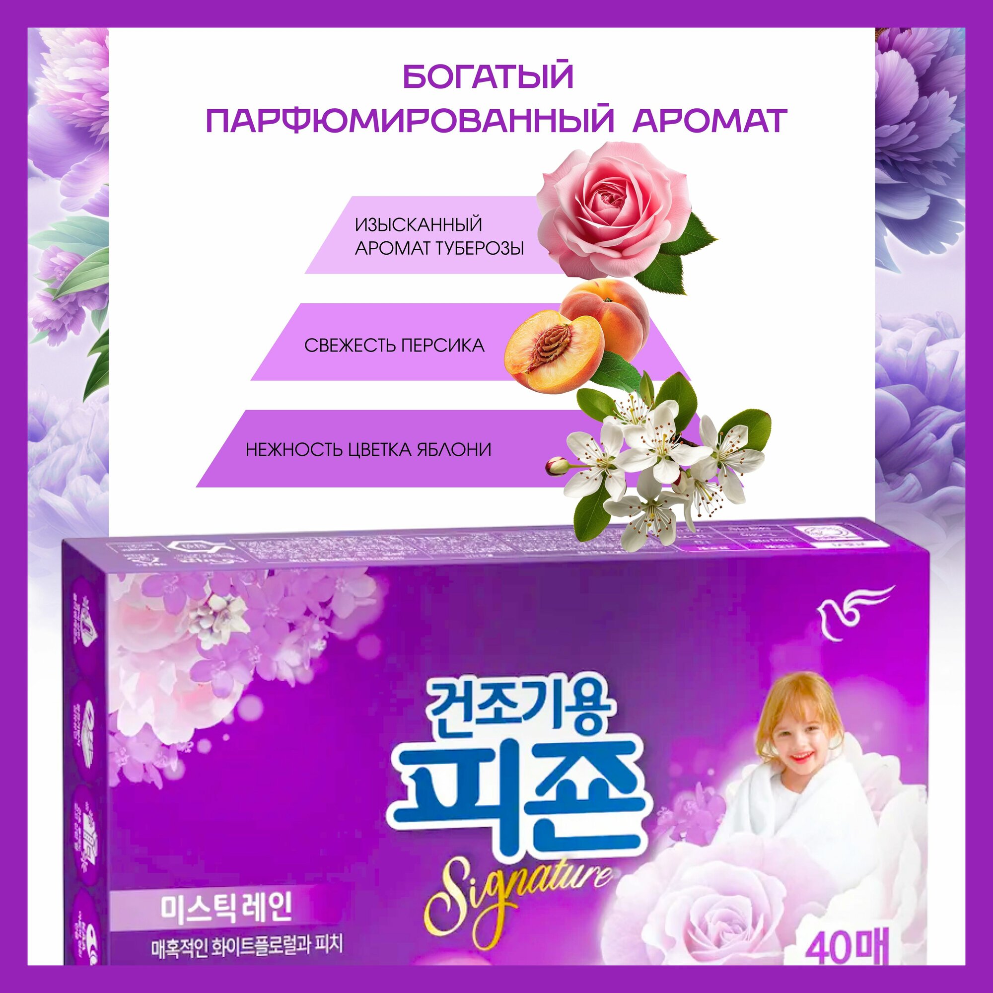 ПГН Кондиционер для белья 40 листов PIGEON RICH PERFUME SIGNATURE DRYER SHEET Mystic Rain 40шт