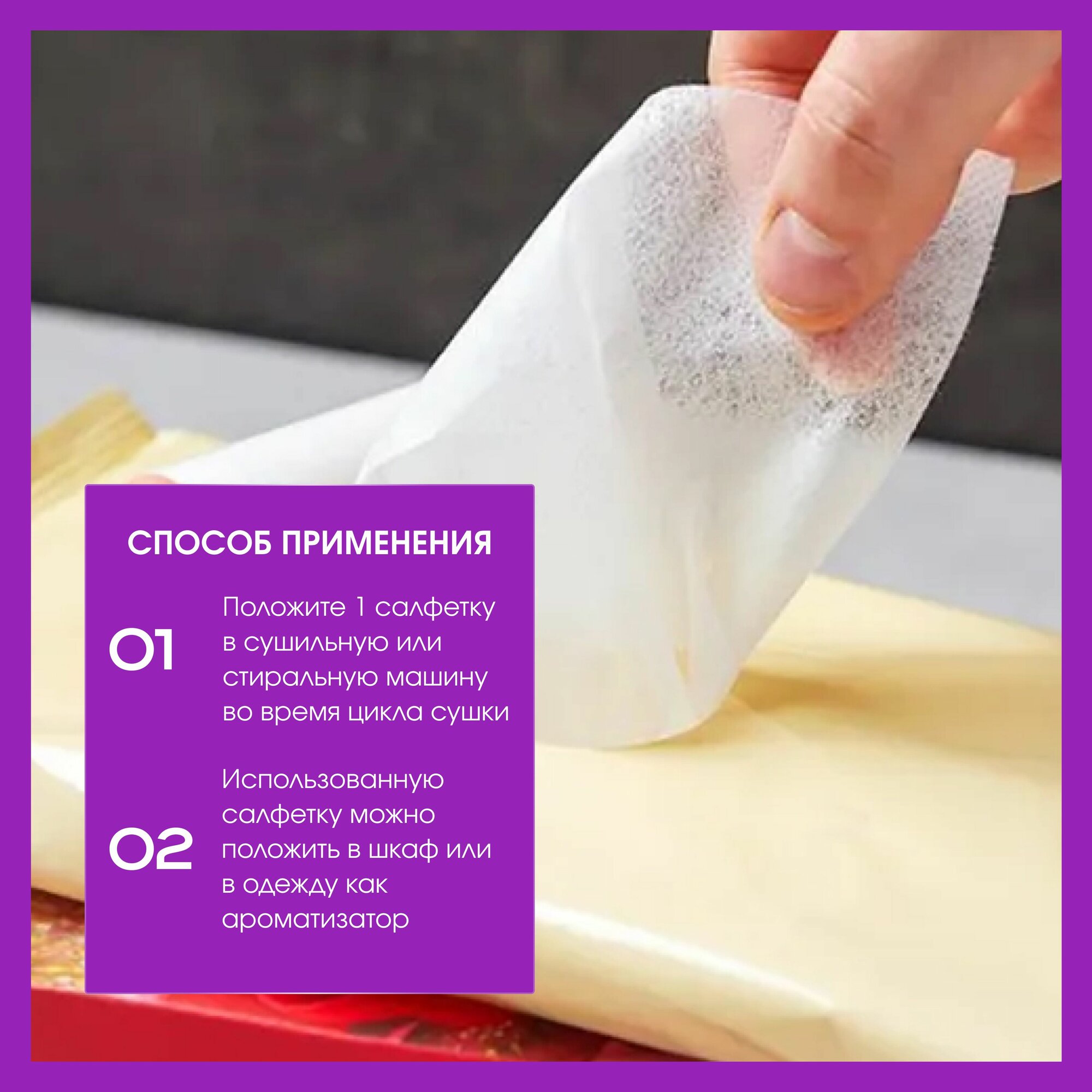 | Плюсы: | Отличный аромат, надолго остаётся. иногда использую одну салфетку дважды в сушке |