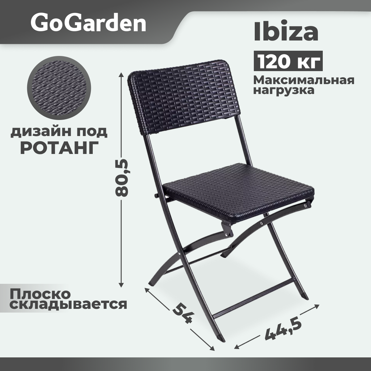 Купить Стул складной GoGarden IBIZA, садовый, 54x44,5x80,5 см, пластик/сталь, цвет венге
