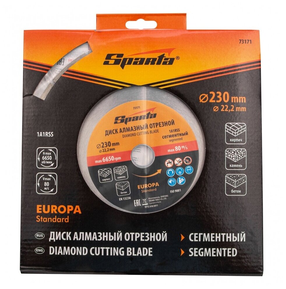 Диск Sparta Europa Standard отрезной алмазный сегментный 230x22.2mm 73171
