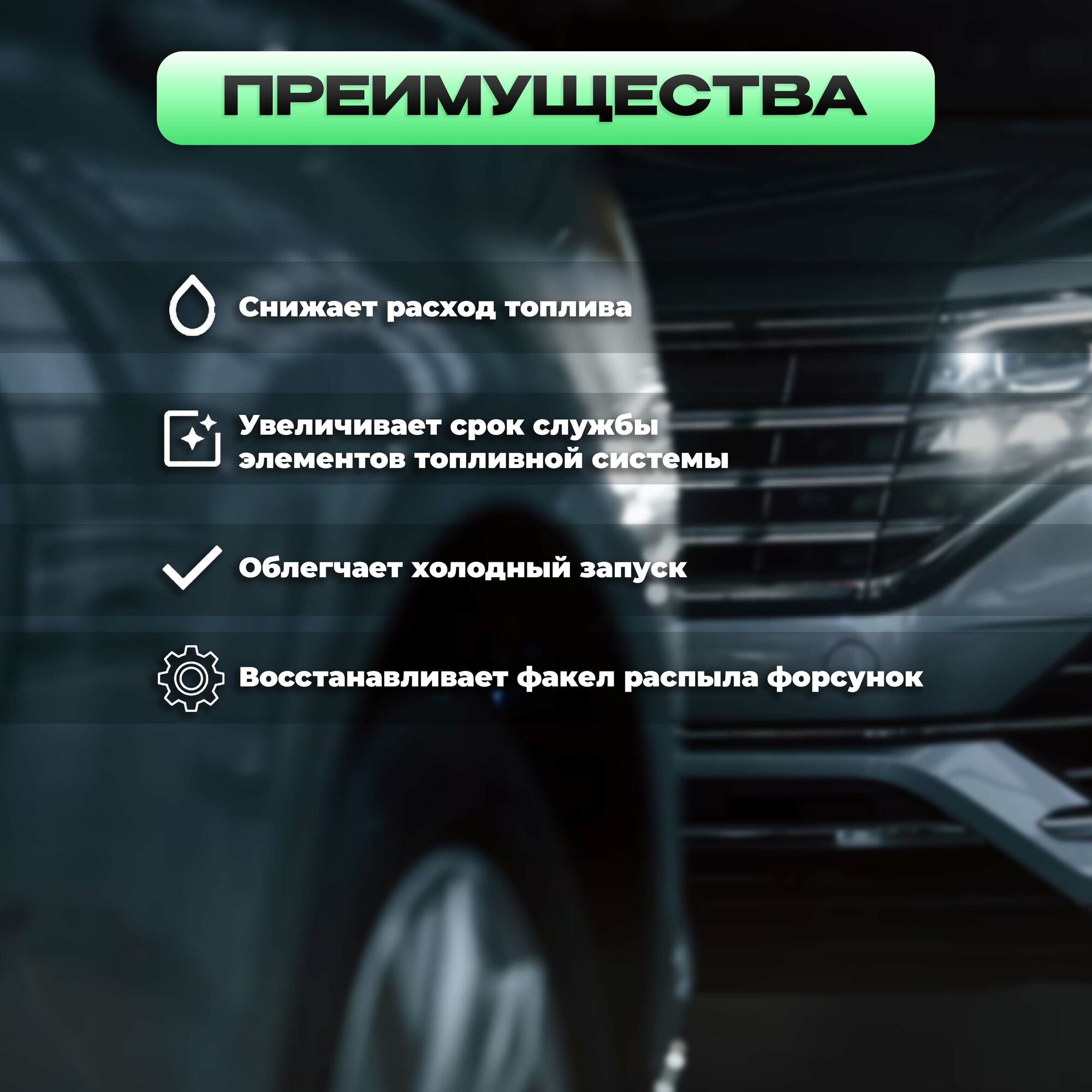 | Плюсы: | Взял 3-х компонентный. Уже на 2ом флаконе, заметно появилась лёгкость работы двс. Запуск, устойчива работа на пониженных оборотах, динамика впечатляет. И это на 2ом флаконе. Рекомендую. |