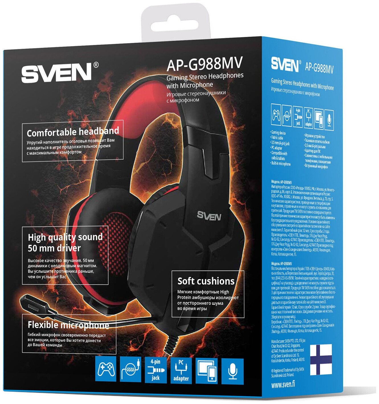 Наушники SVEN AP-G988MV (SV-014797) черный-красный