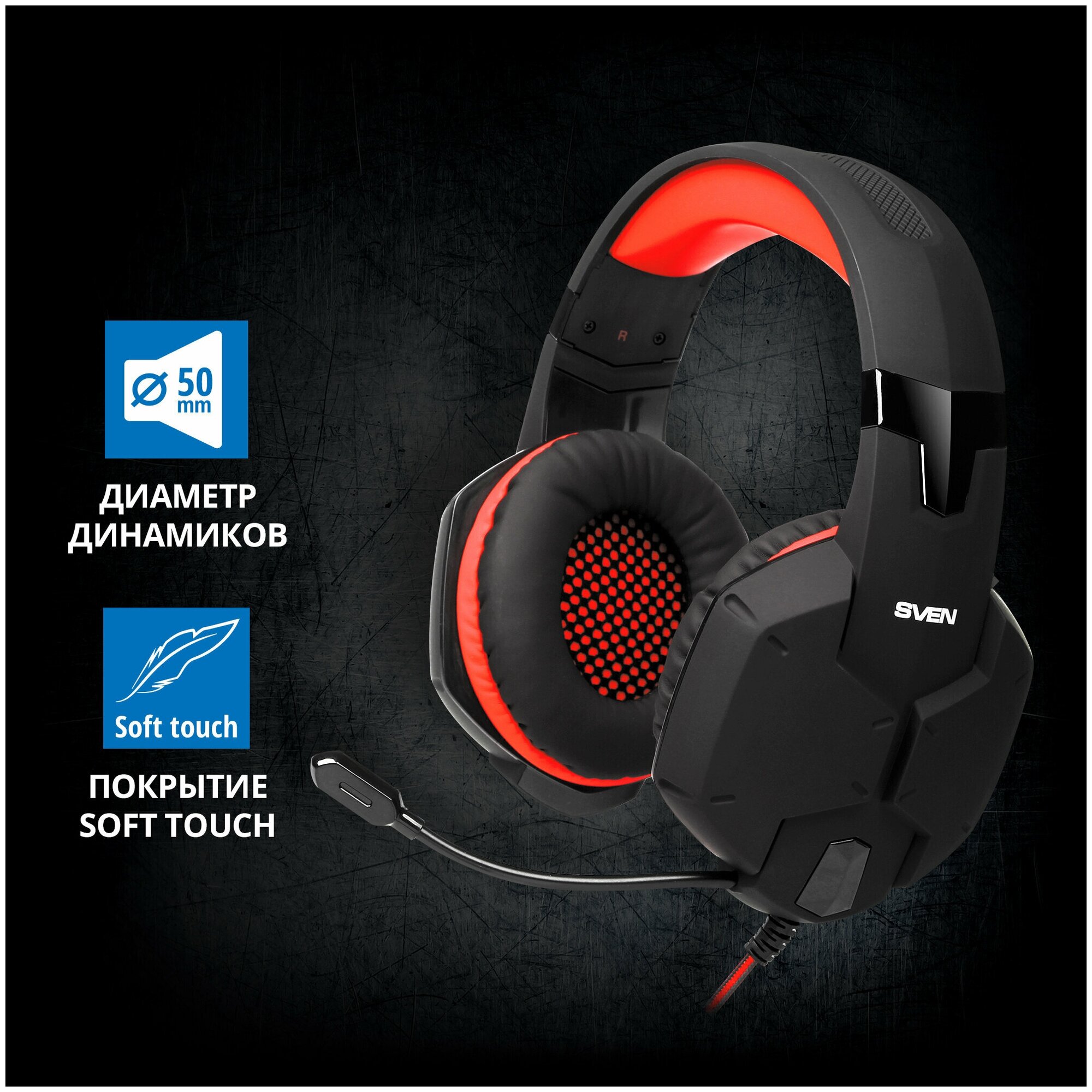 Гарнитура игровая Sven AP-G988MV, для компьютера, накладные, черный / красный [sv-014797]