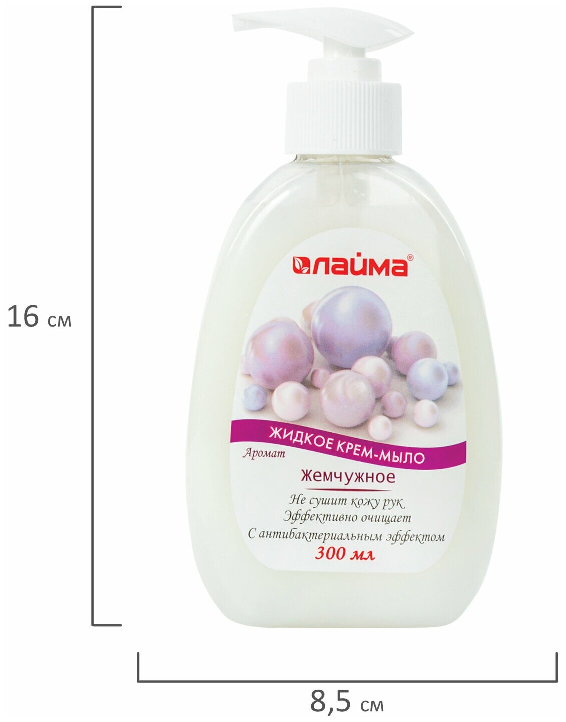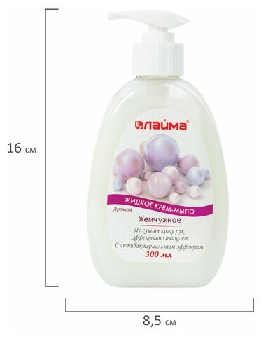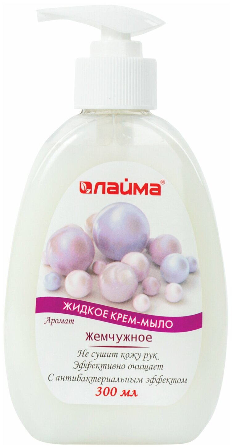 Мыло-крем жидкое Лайма 300 мл, "Жемчужное", с антибактериальным эффектом, дозатор (603087)