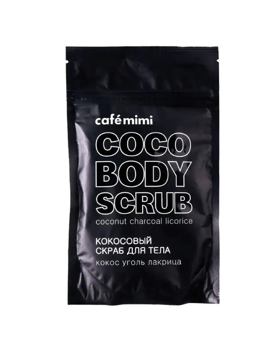 Cafe mimi Кокосовый скраб для тела Уголь и лакрица, 150 мл, 150 г