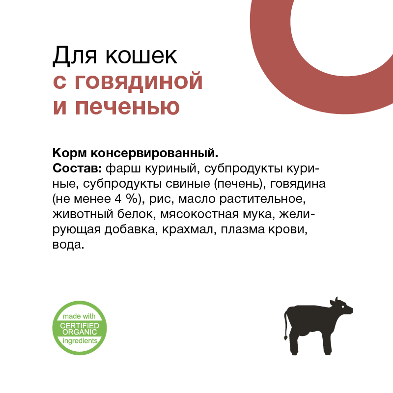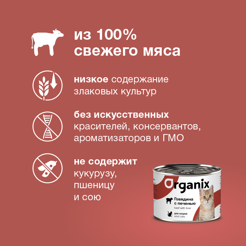 Влажный корм для кошек ORGANIX с говядиной, с печенью 100 г