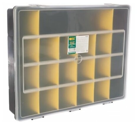 Ящик для крепежа FIT 65655 14", пластик, 36х28х7 см, чёрный, жёлтый, 10шт