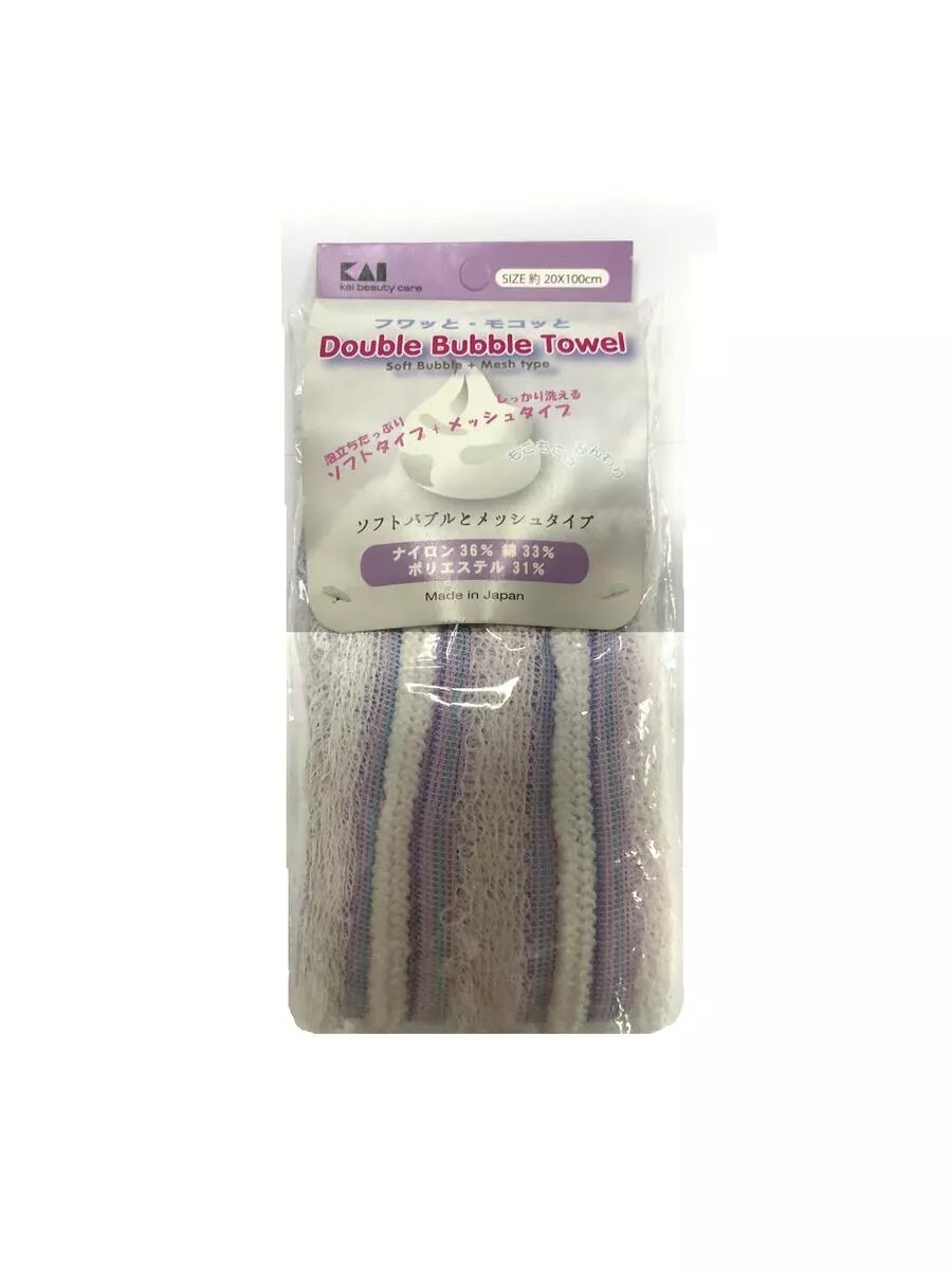Мочалка для тела мягкая Double Bubble Towel для обильного пенообразования, 20см х 100см Kai