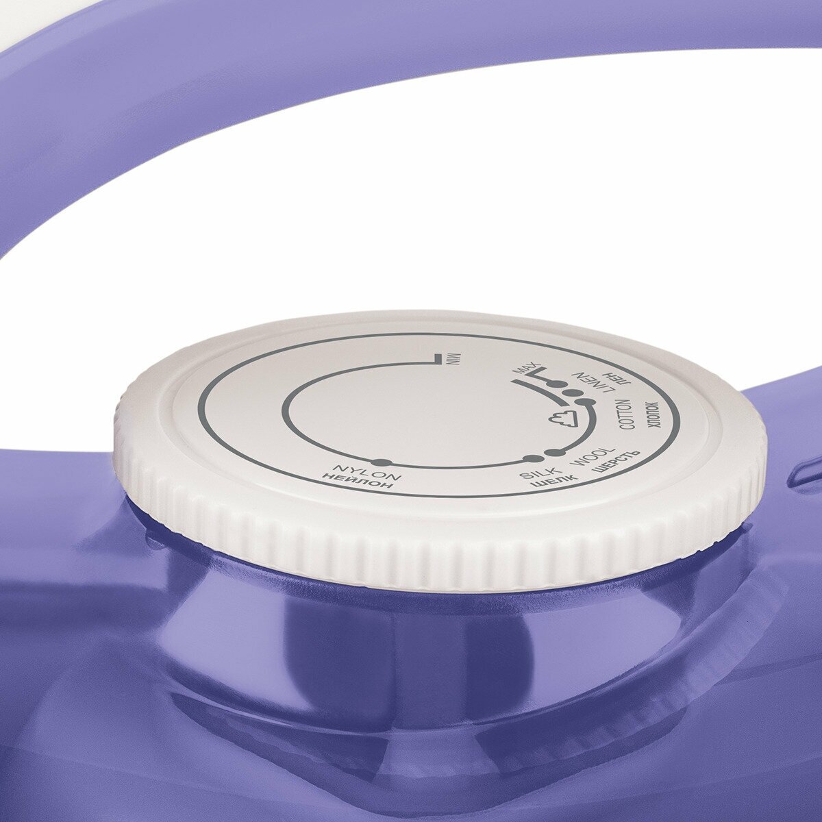 | Плюсы: | Стильный дизайн корпуса в фиолетовом цвете, проворачивание шнура по кругу, индикация нагрева, регулировка подачи пара, отпаривание с носика, подошва из керамики |