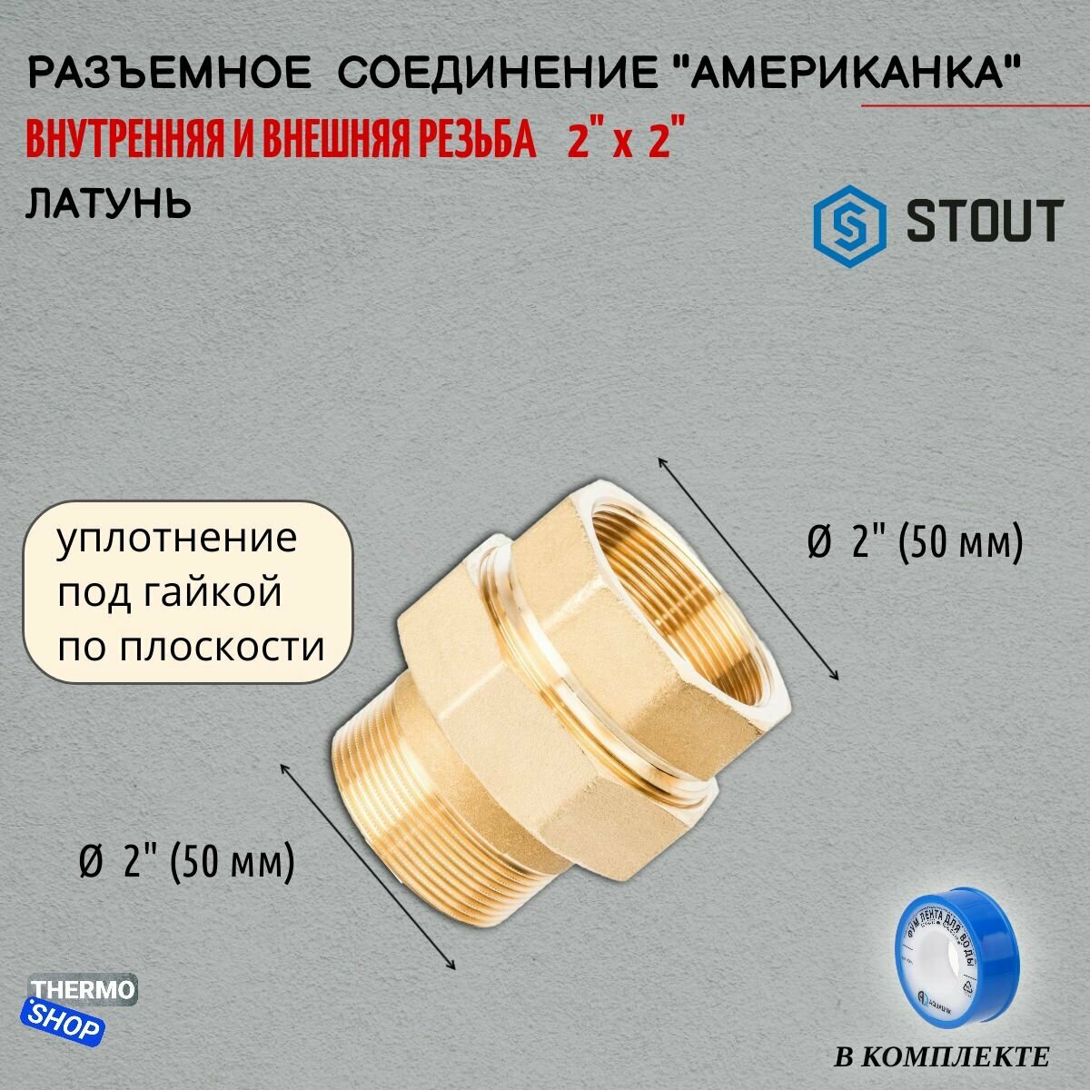 STOUT Разъемное соединение "американка" уплотнение под гайкой по плоскости ВН 2"