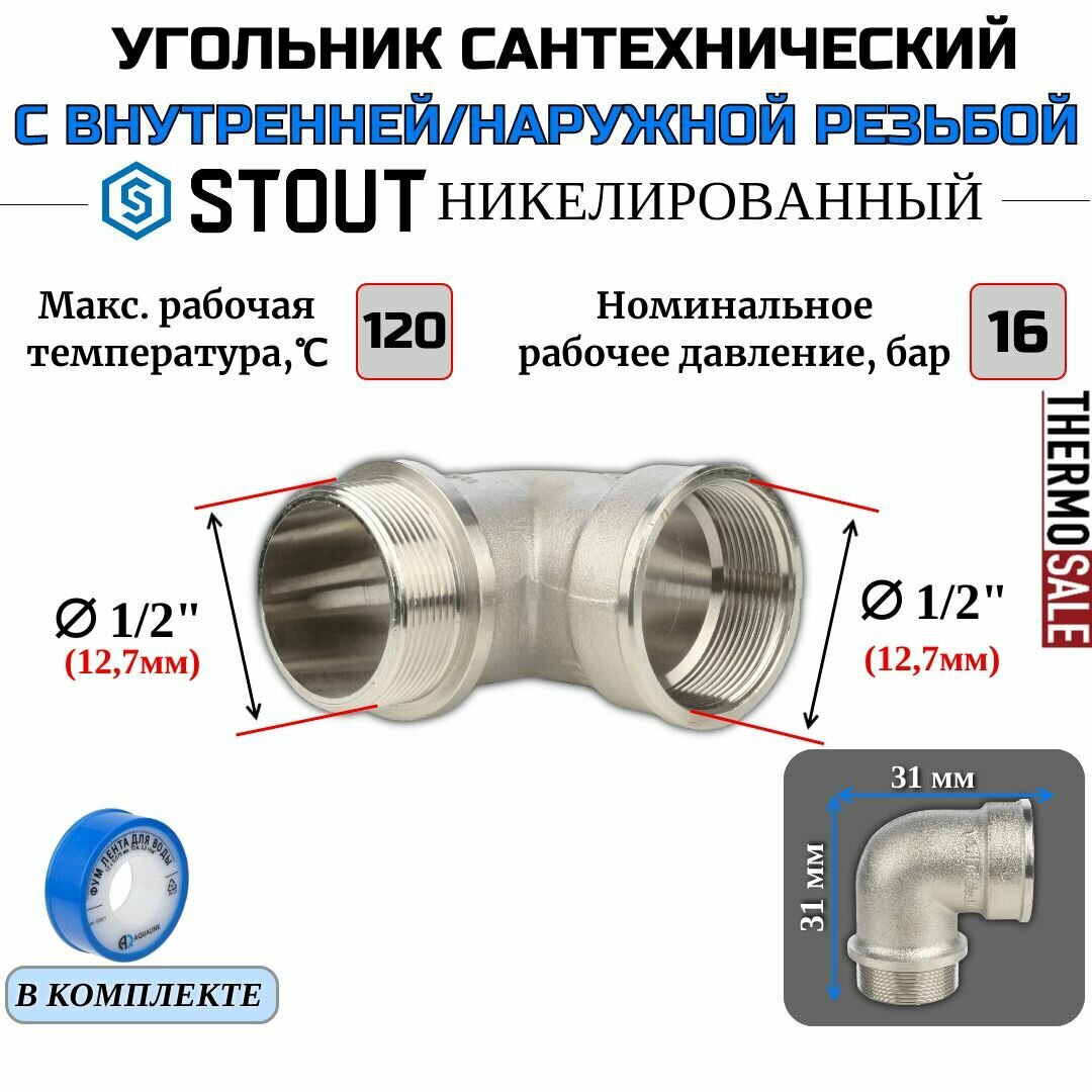 Угольник с упором 1/2"НРx1/2"ВР никелированный STOUT, SFT-0016-000012