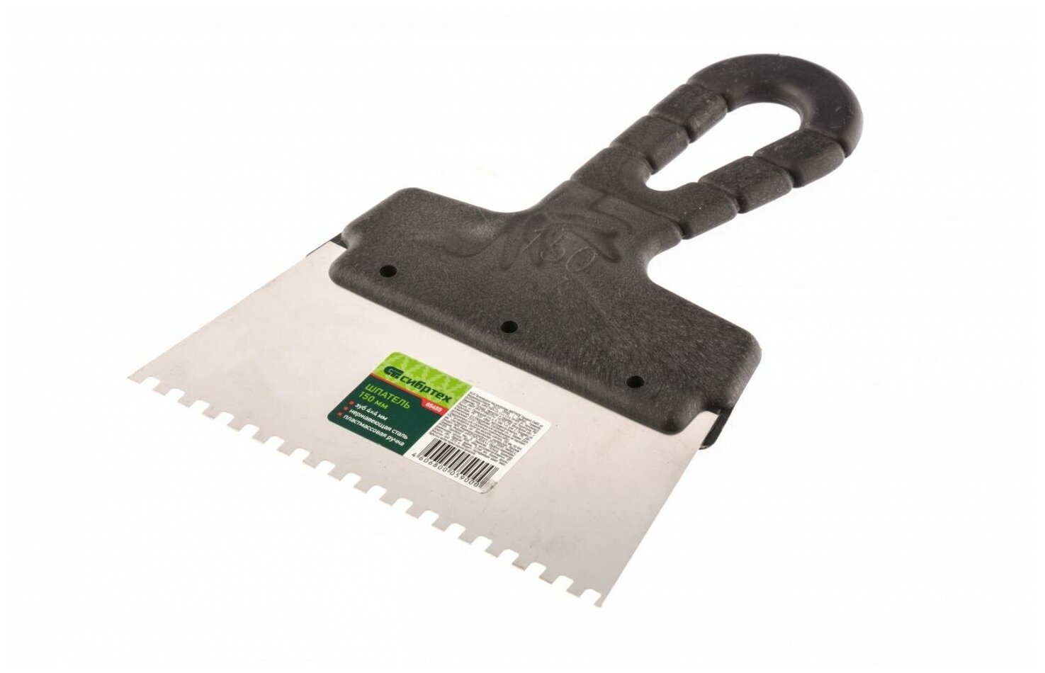 Шпатель из нержавеющей стали, 150 мм, зуб 4 х 4 мм, пластмассовая ручка 8545511 СИБРТЕХ 4606800059000