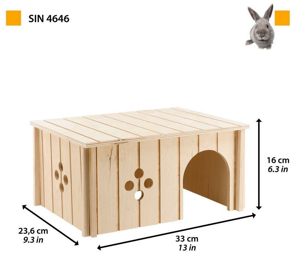 Домик SIN4646 для кроликов средний, 23,6*33*16см