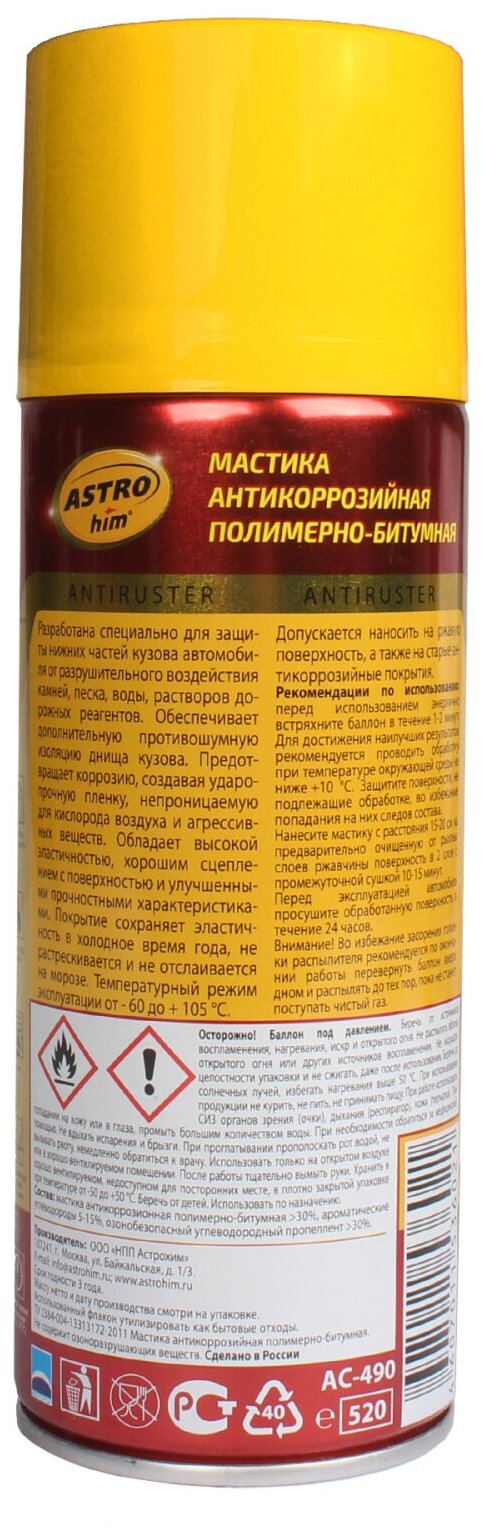 Мастика Антикоррозийная Astrohim Полимерно-Битумная, Серия Antiruster, Аэрозоль 520 Мл Ac-490 ASTROHIM арт. AC490