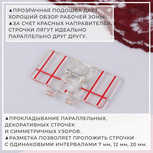 Лапка для швейных машин, с разметкой для параллельных швов интересное: