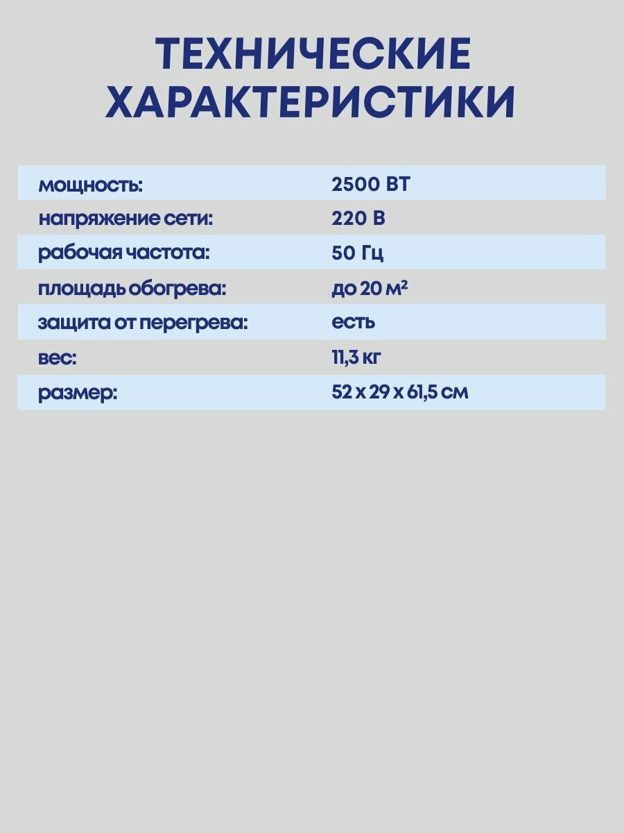 | Макс. мощность обогрева | 2500 Вт |