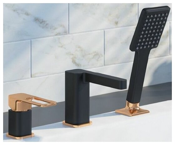 Смеситель на борт ванны IDDIS Slide (SLIBG30i07), черный/розовое золото