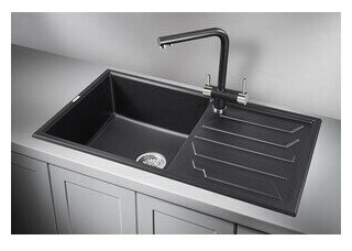 Кухонная мойка кварцевая Granula GR-8601 прямоугольная с крылом, врезная, чаша 435х445, цвет черный (8601bl)