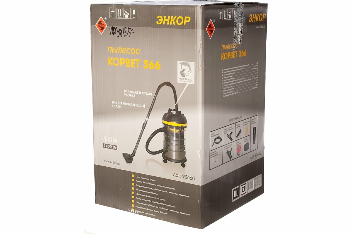 Пылесос Энкор Корвет-366 влажная и сухая уборка, розетка