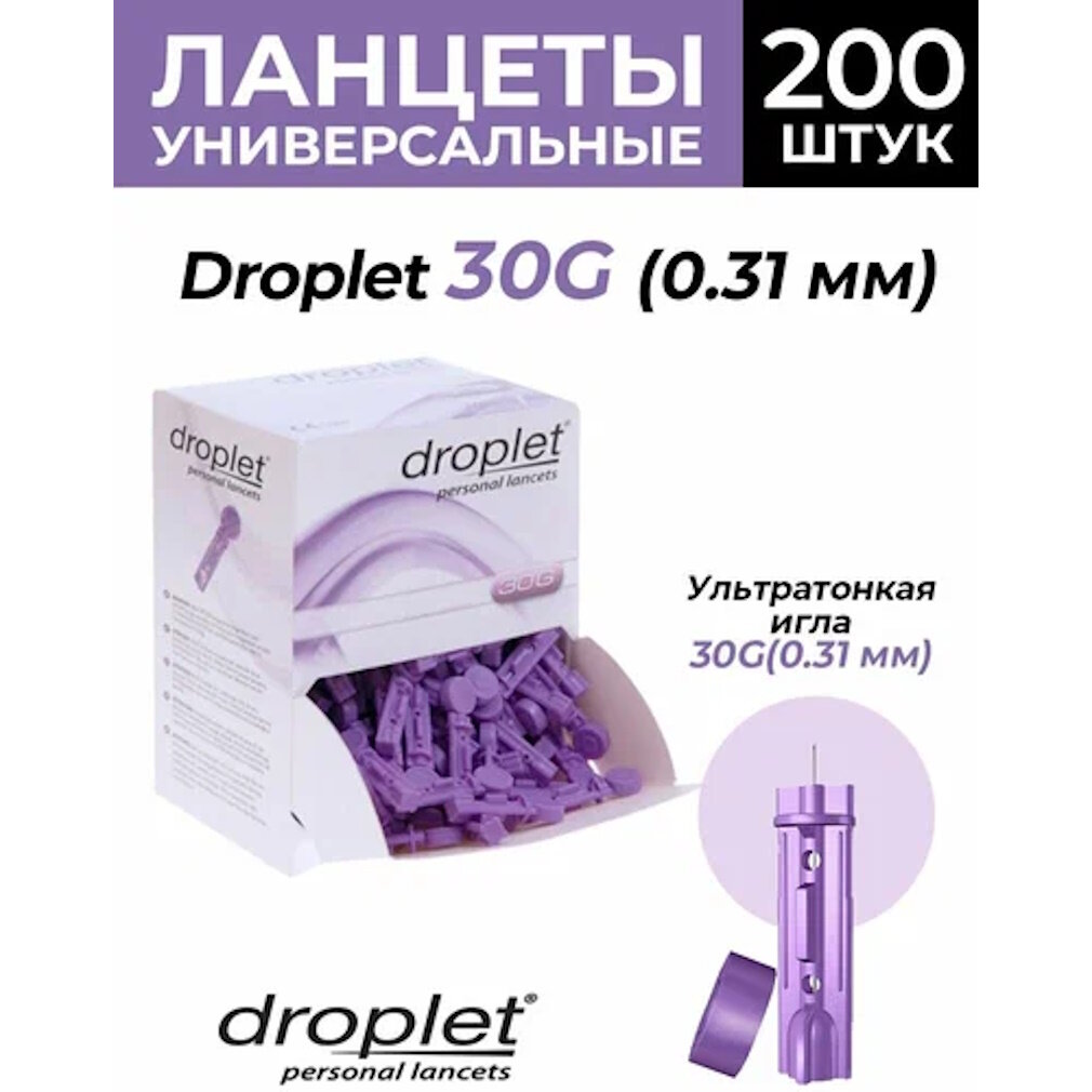 Ланцеты для ручек универсальных DROPLET (Дроплет) 30G (0.31 мм) № 200
