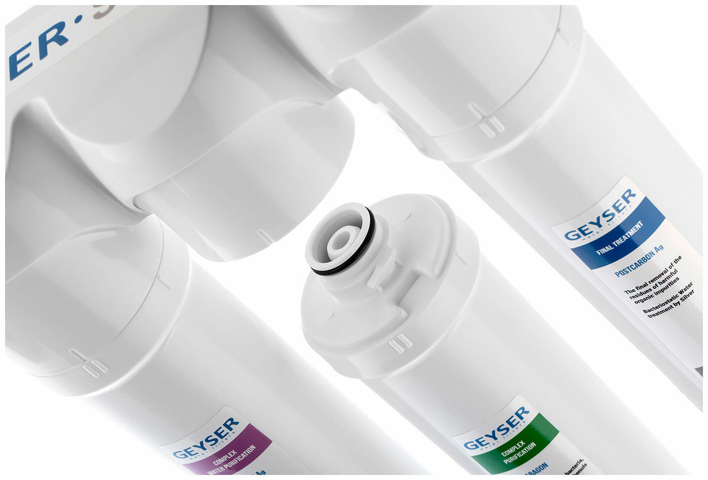 Для меня как для девушки, удобная замена фильтров. Потянул на себя открутил, вкрутил новый. Не нужно промывать все сьемные материалы. Если вода жесткая, можно приобрести аналогичные фильтры этой марки, они подойдут. Когда у фильтров гейзера заканчивается срок, напор воды сокращается до минимума. А например у аквафора можно пользоваться еще месяц до тухлого запаха(не замечая, что пьем дрянь). У всех разное пользование водой и не всегда можно полагаться на инструкции. В этом у систем гейзеров проработано удобнее. Цены у фильтров не самые дешевые, и менять чуть чаще их нужно. Но зато, вода нормальная, отслеживание удобное, быстрая замена. |