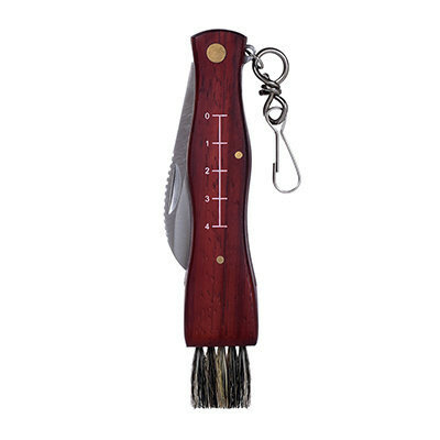 Более дорогие аналоги начинаются от 1500 р. Компактный, деревянная рукоять, на корпусе есть сантиметровая шкала и щётка (непонятно зачем ?). Удачная форма и длина лезвия. |