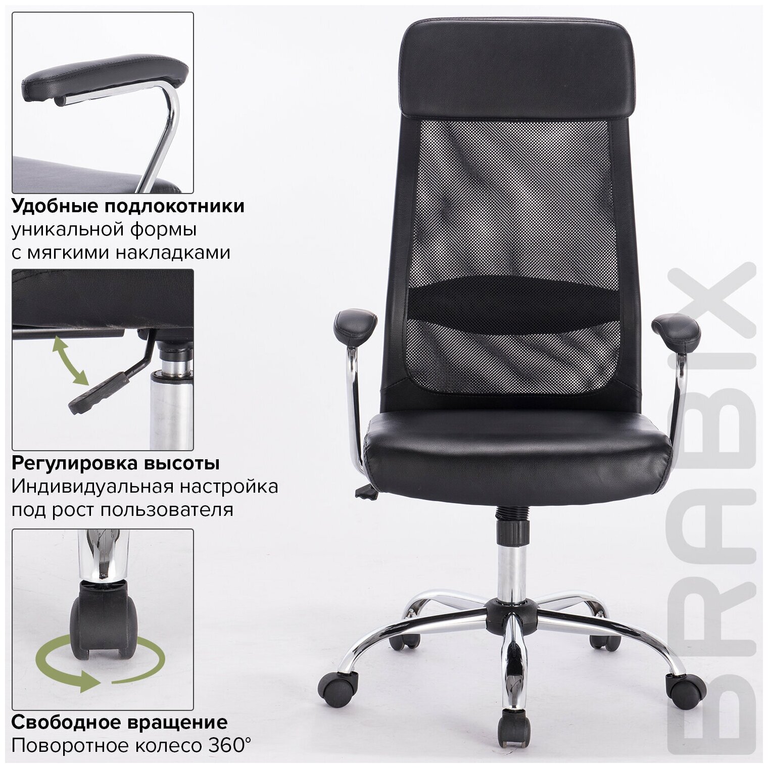 Кресло офисное BRABIX Flight EX-540, хром, экокожа, сетка, черное, 531850
