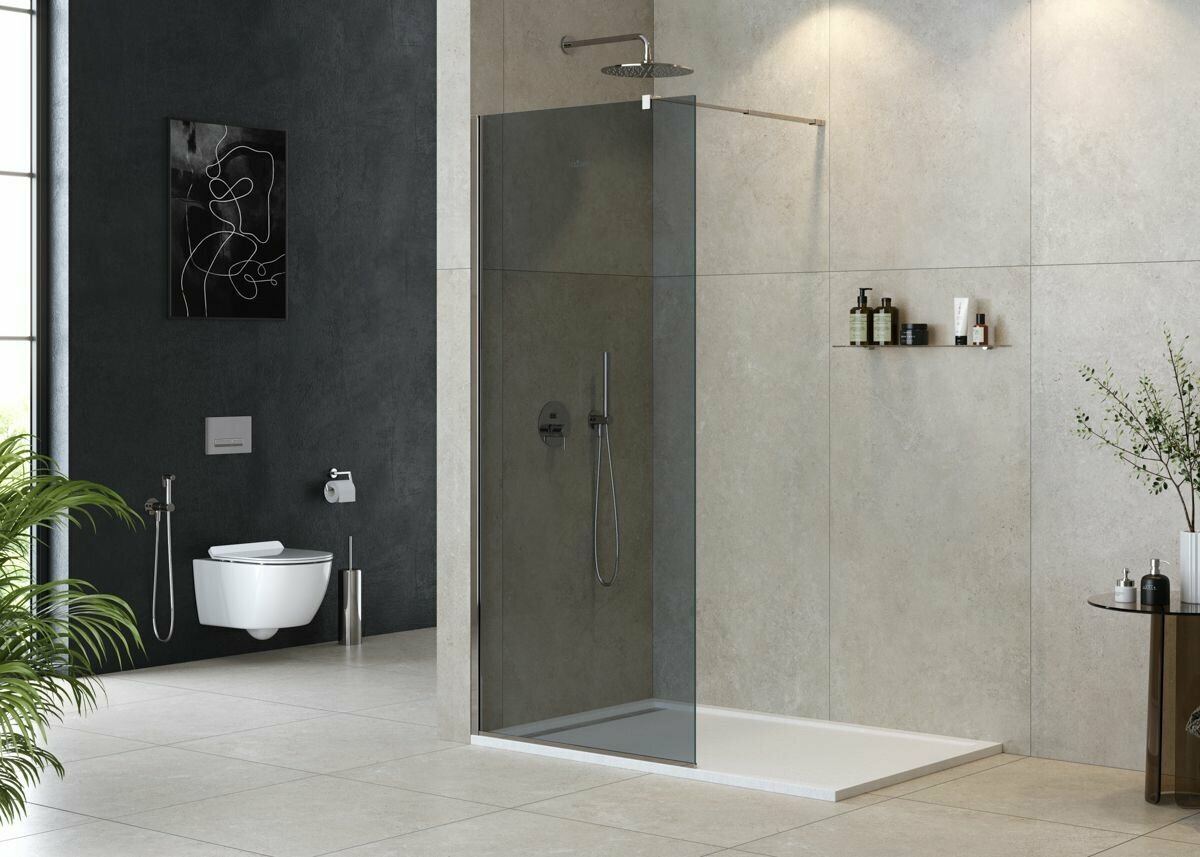 Стеклянная душевая перегородка Cezares LIBERTA-L-1-80-BR-Cr, стекло тонированное