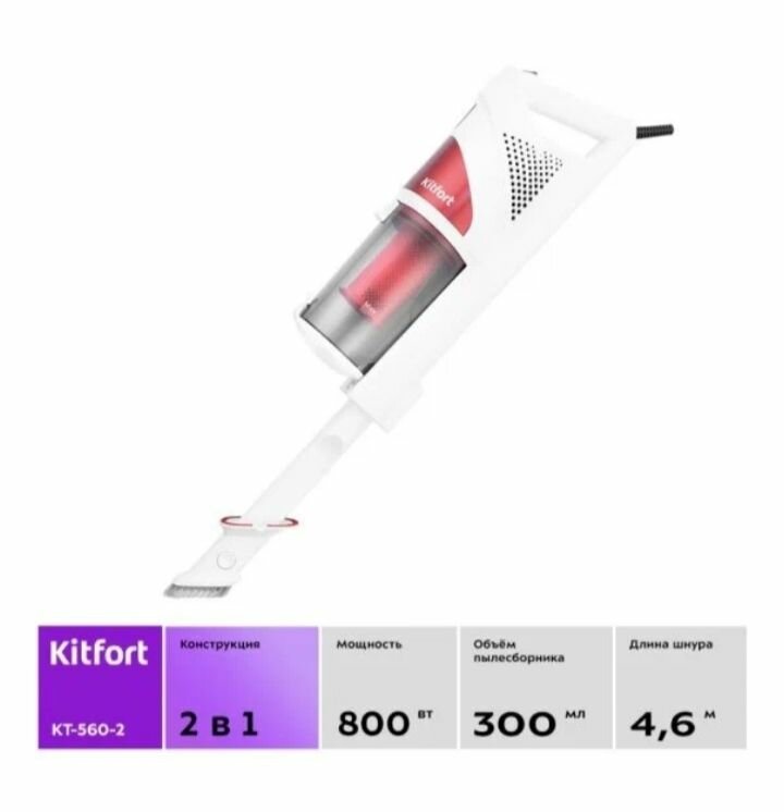 Пылесос-электровеник (handstick) KitFort KT-560-2, 800Вт, белый/красный [кт-560-2]