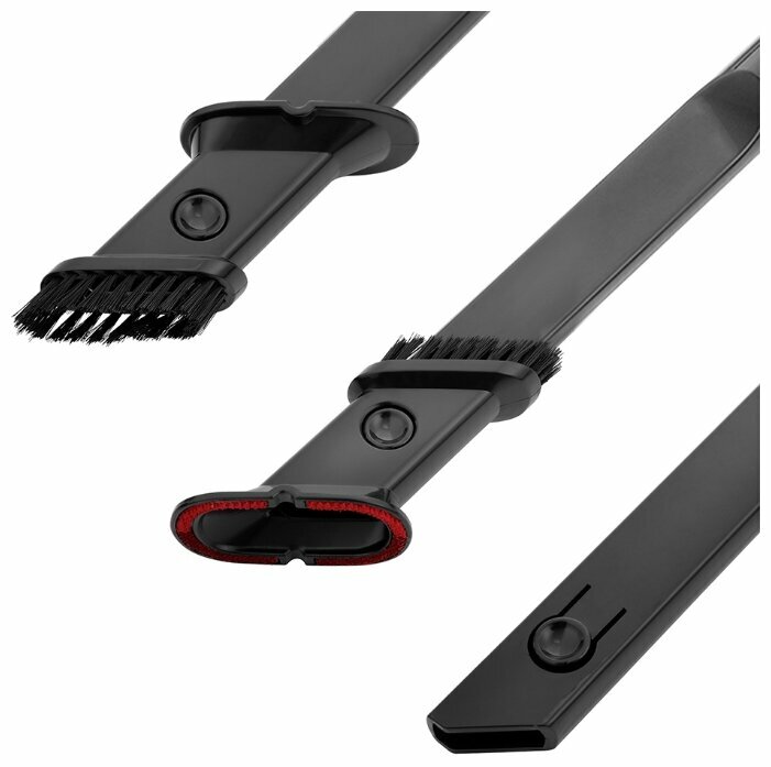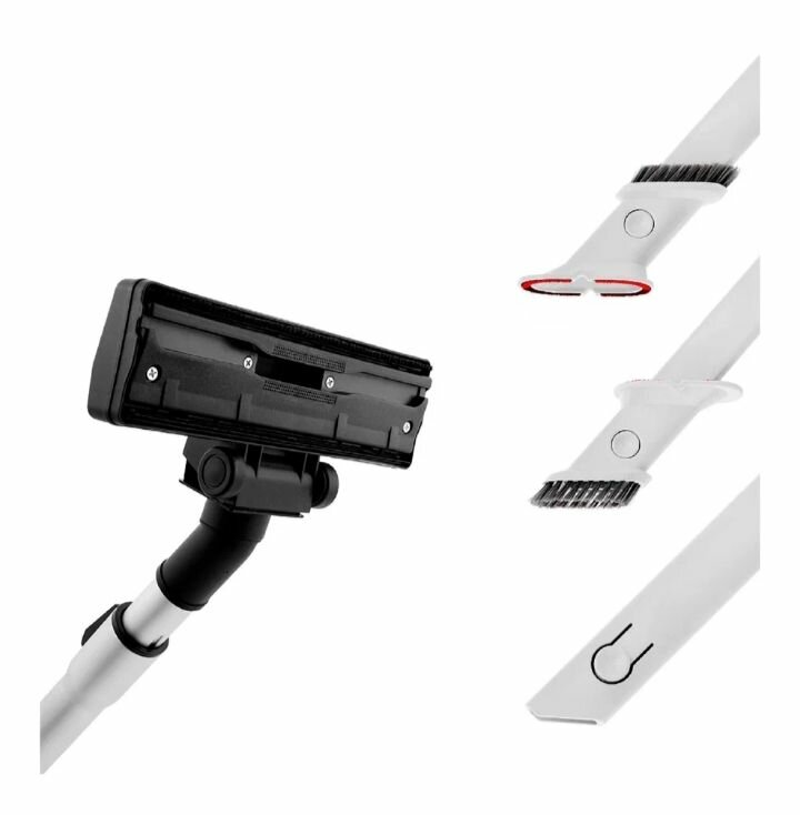 - Очень радует наличие щётки в насадке для пола (для уборки ковров), что редкость для ручных пылесосов особенно в этой ценовой категории. - Опять же огромный плюс, что при отсоединении телескопической трубки превращается в ручной пылесос - удобно для уборки на высоких поверхностях или в очень труднодоступных местах. - Компактный. Жаль что нельзя поставить просто на пол вертикально, но зато в комплекте есть настенный крепеж. - Думаю, что всё же плюс, что работает от сети. Ибо может разрядиться как всегда в неподходящий момент, к тому же аккумуляторы со временем теряют ёмкость, особенно если разряжать литий-ионный аккумулятор «в ноль». Да и провод достаточно длинный, во всяком случае длиннее, чем во многих аналогичных моделях. - Достаточно лёгкий. |