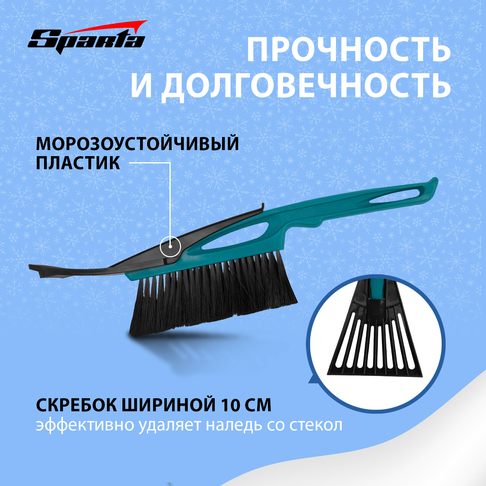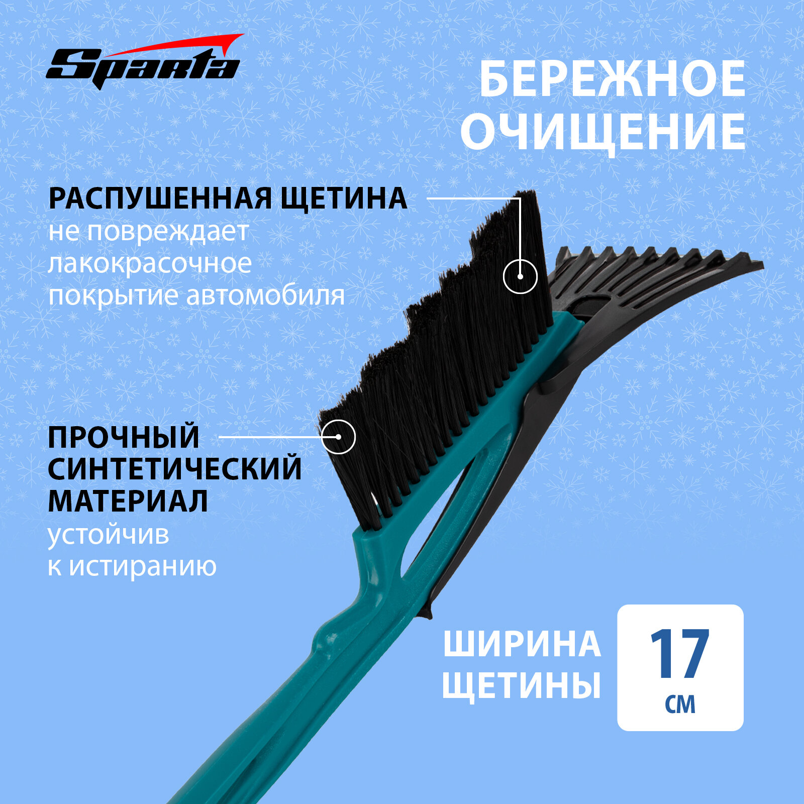 Купить Щетка-сметка для снега со скребком 400 мм, бирюзовая Sparta Россия