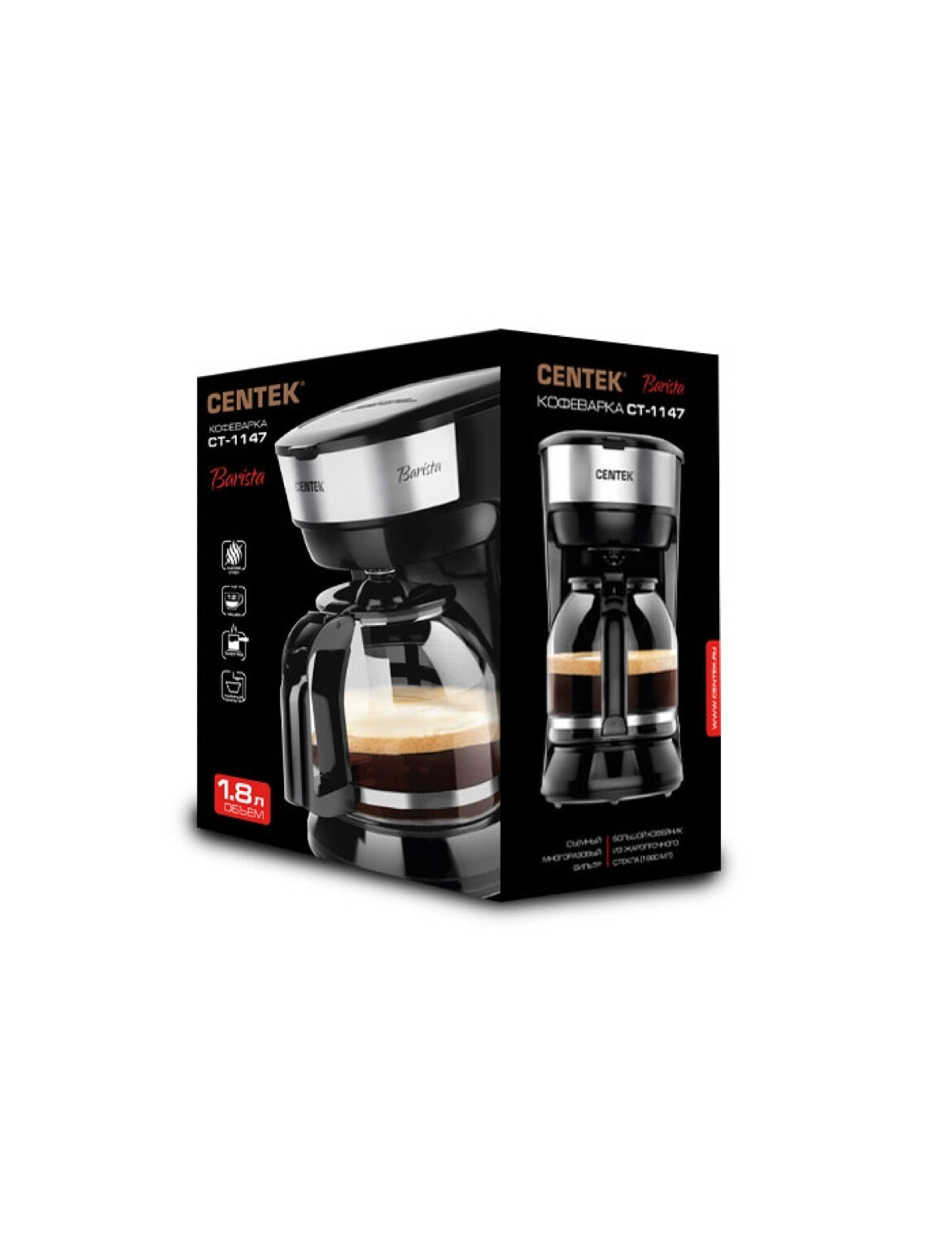 Кофеварка Centek CT-1147 капельная 900Вт, 1800мл, капля стоп, подогрев, съемный фильтр