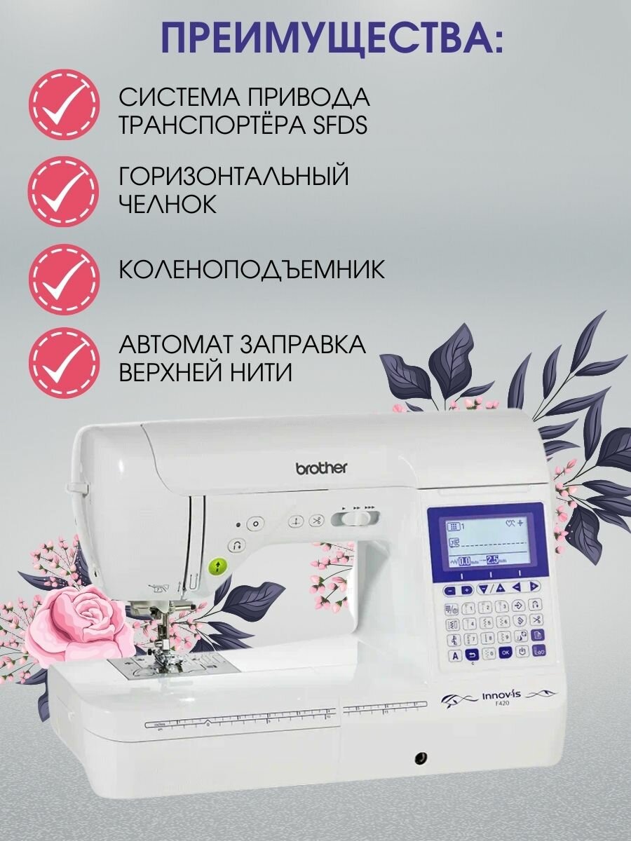 Швейная машина Brother INNOV-'IS F420, белый, современный челнок, металлическая станина, с дисплеем