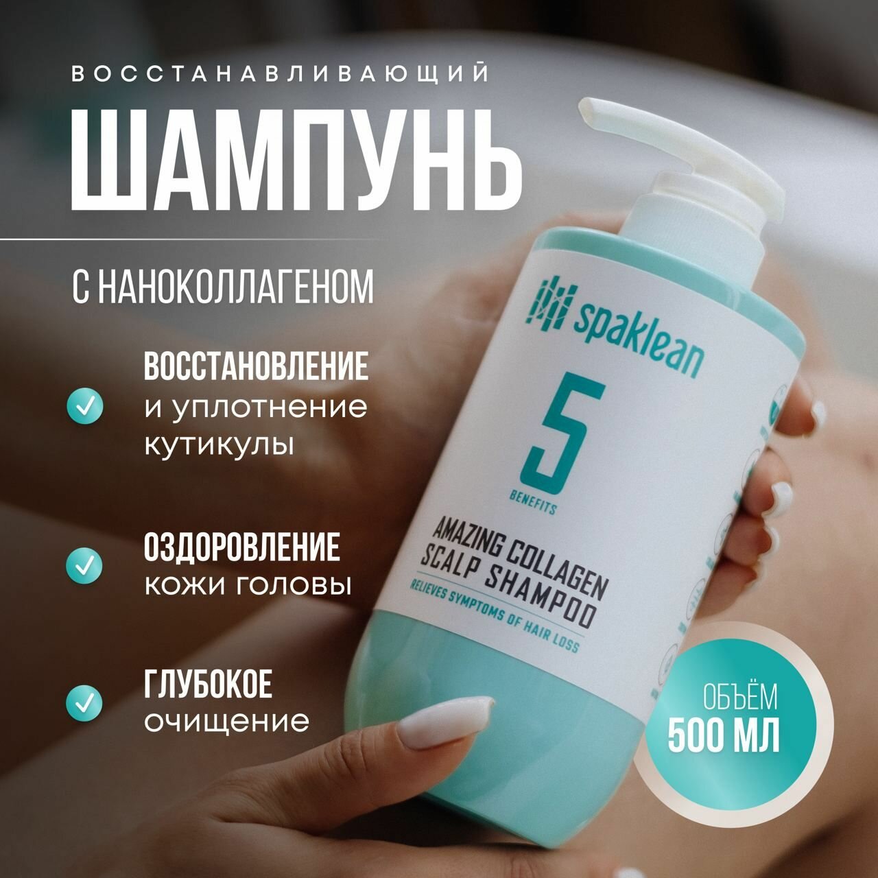 Spaklean Восстанавливающий шампунь для сухих и поврежденных волос с наноколлагеном, себорегулирующий Amazing Collagen Scalp Shampoo 500 мл.