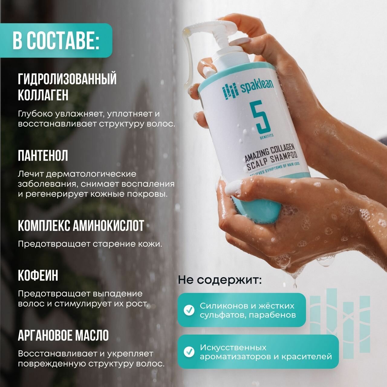 SPAKLEAN Шампунь для кожи головы с коллагеном. Amazing collagen scalp shampoo, 500 мл.
