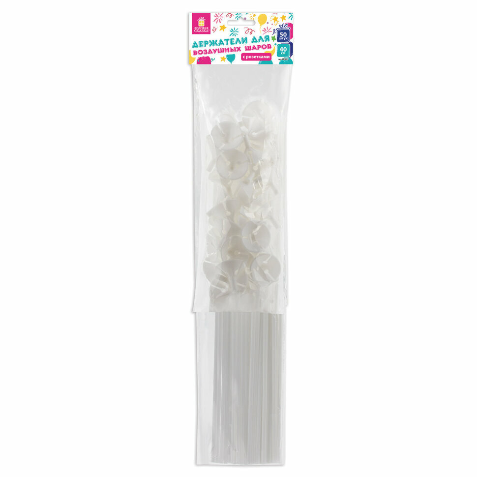 Держатели для воздушных шаров (палочки 40 см+розетки) золотая сказка, комплект 50 шт., белые, 591097