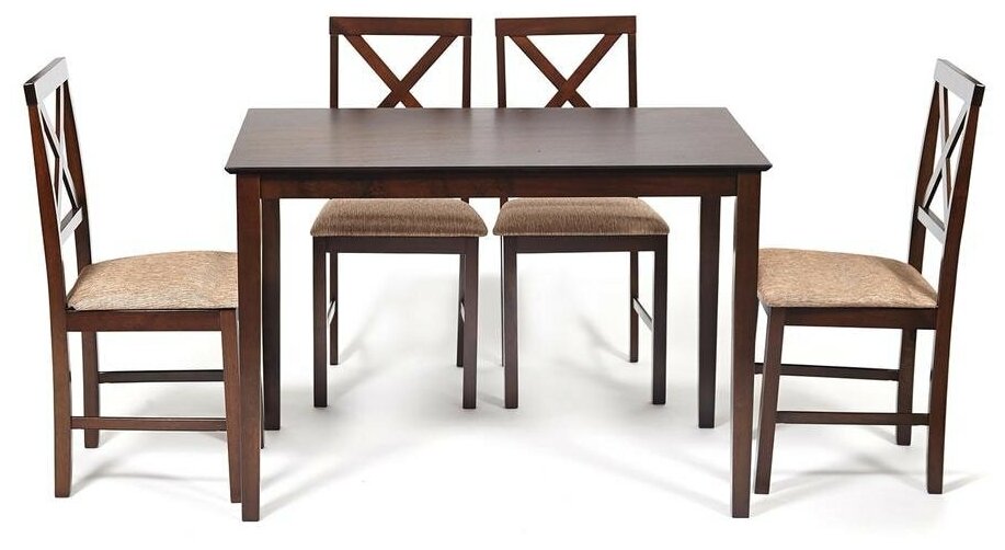 Обеденный комплект TetChair Хадсон (стол обеденный + 4 стула), дерево, мдф, темный орех, ткань