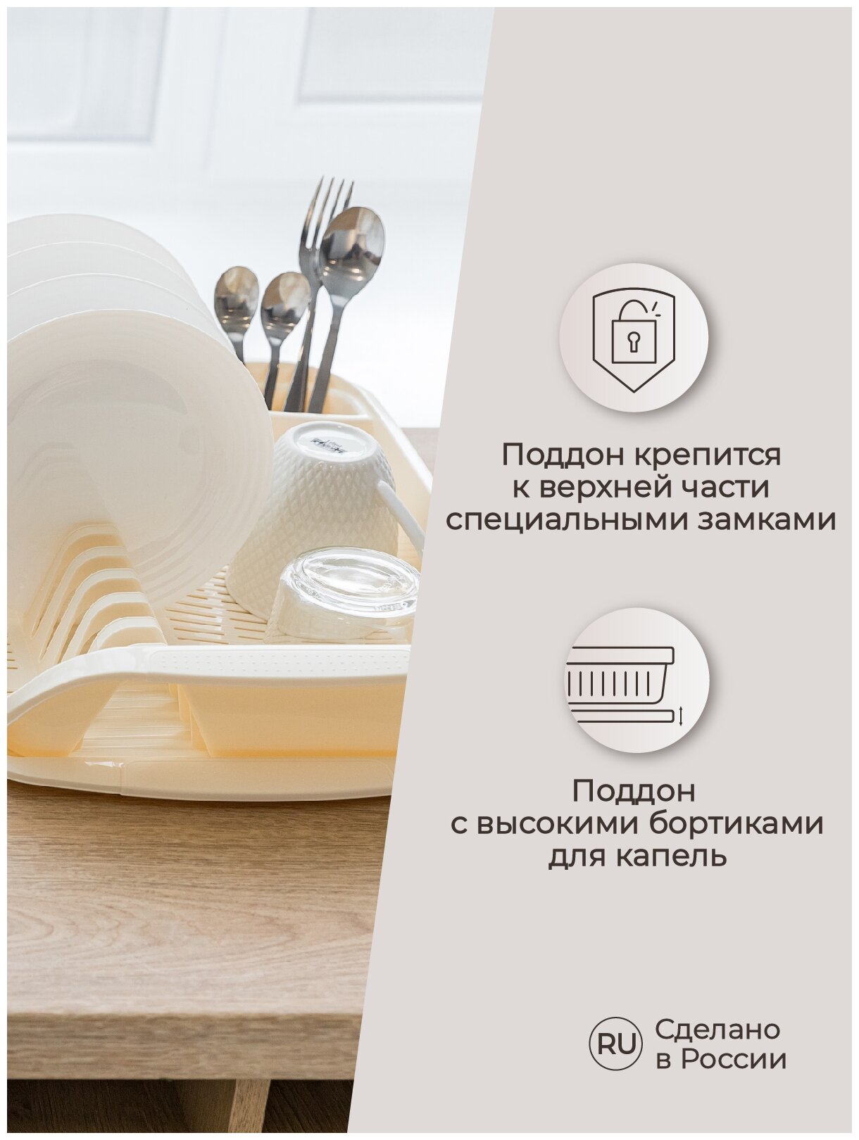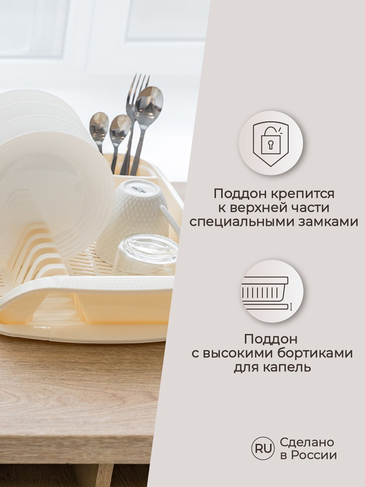 Сушилка для посуды 395х295х80 ММ (Бежевый) интересное: