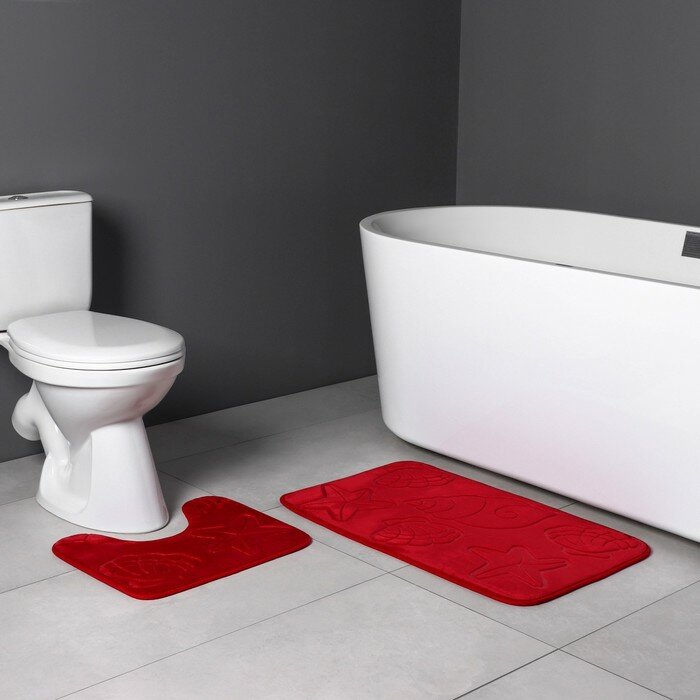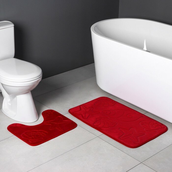 СохранитьНабор ковриков для ванны и туалета Доляна «Ракушки», объёмные, 2 шт: 40×50, 50×80 см, цвет бордовый интересное: